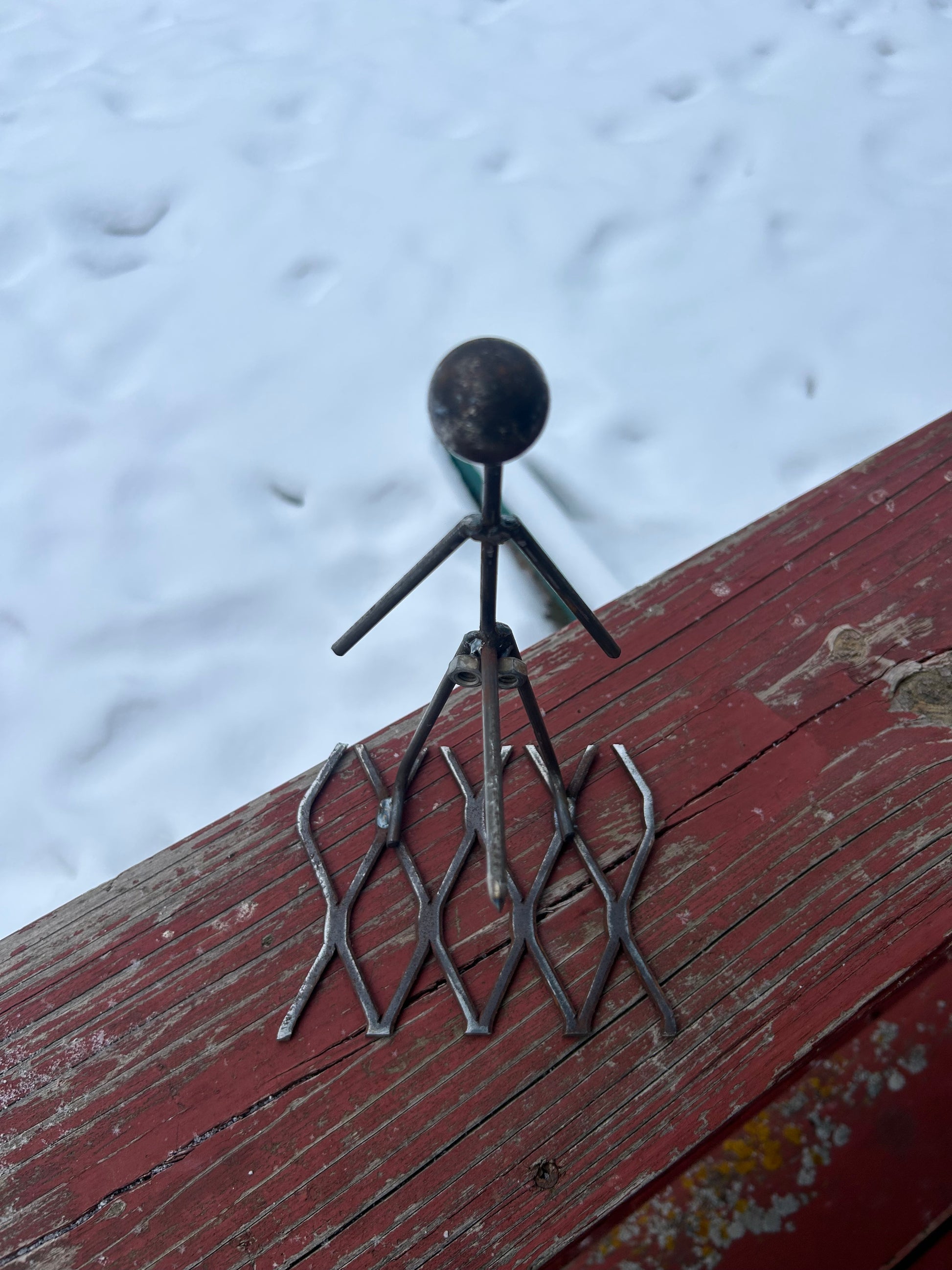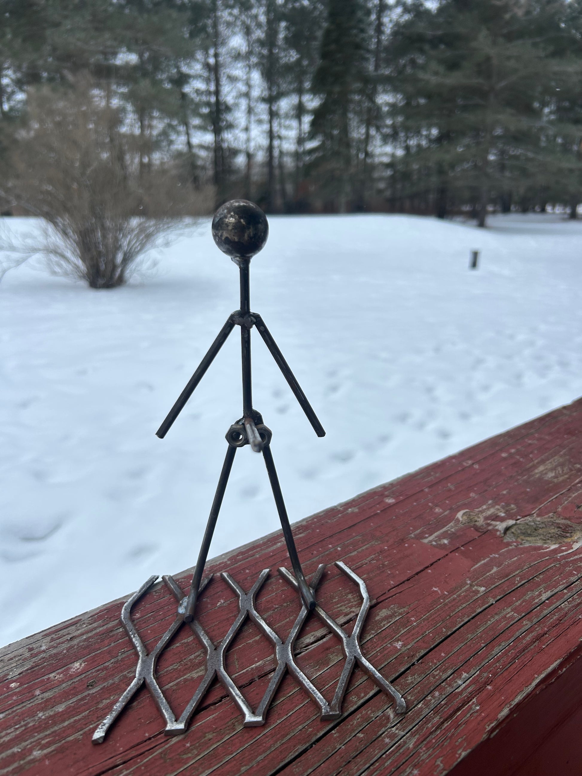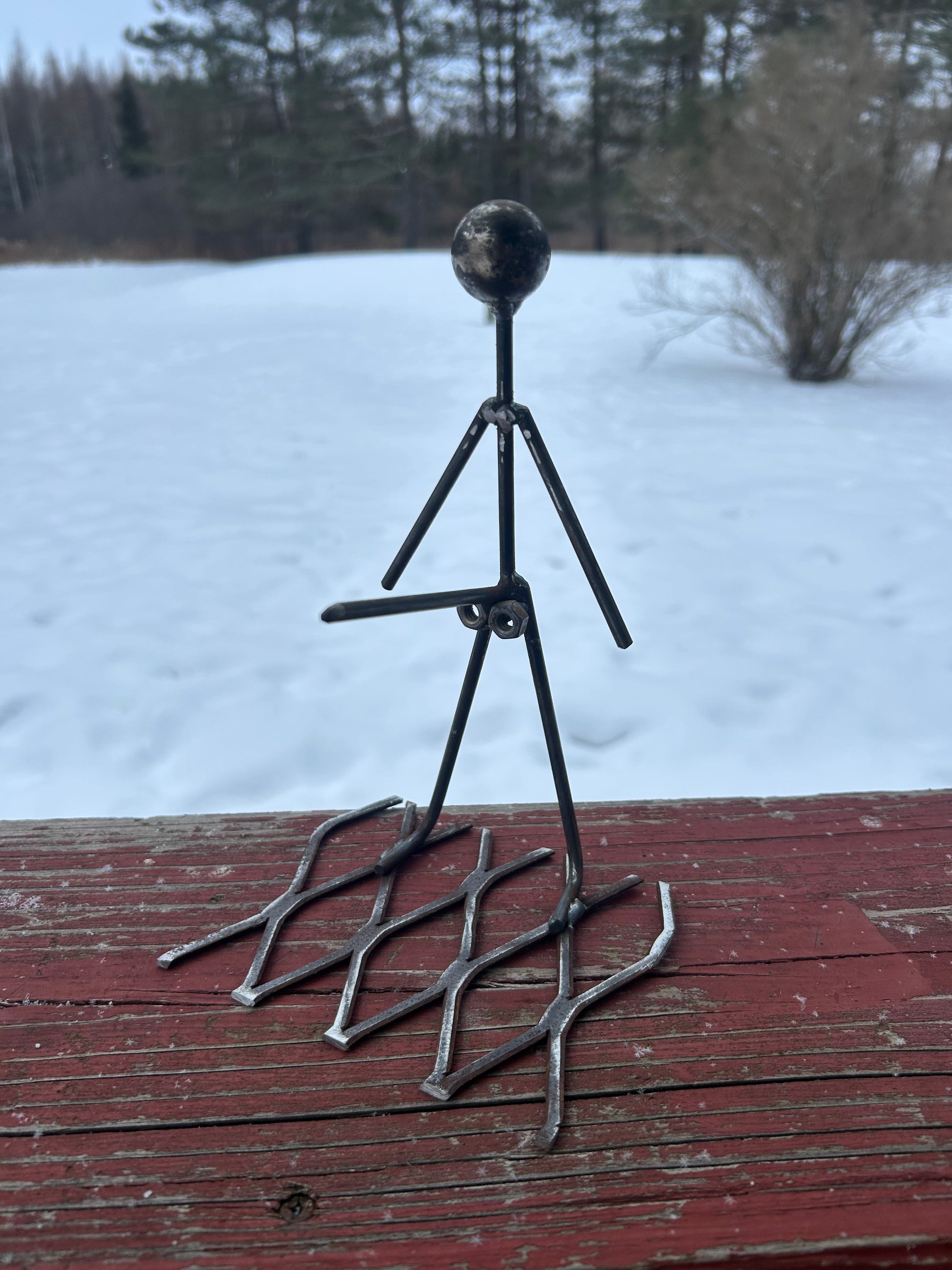 This grill buddy makes cooking hot dogs more fun! Place him on your grill, place a hot dog on the grill buddy, and get cooking!