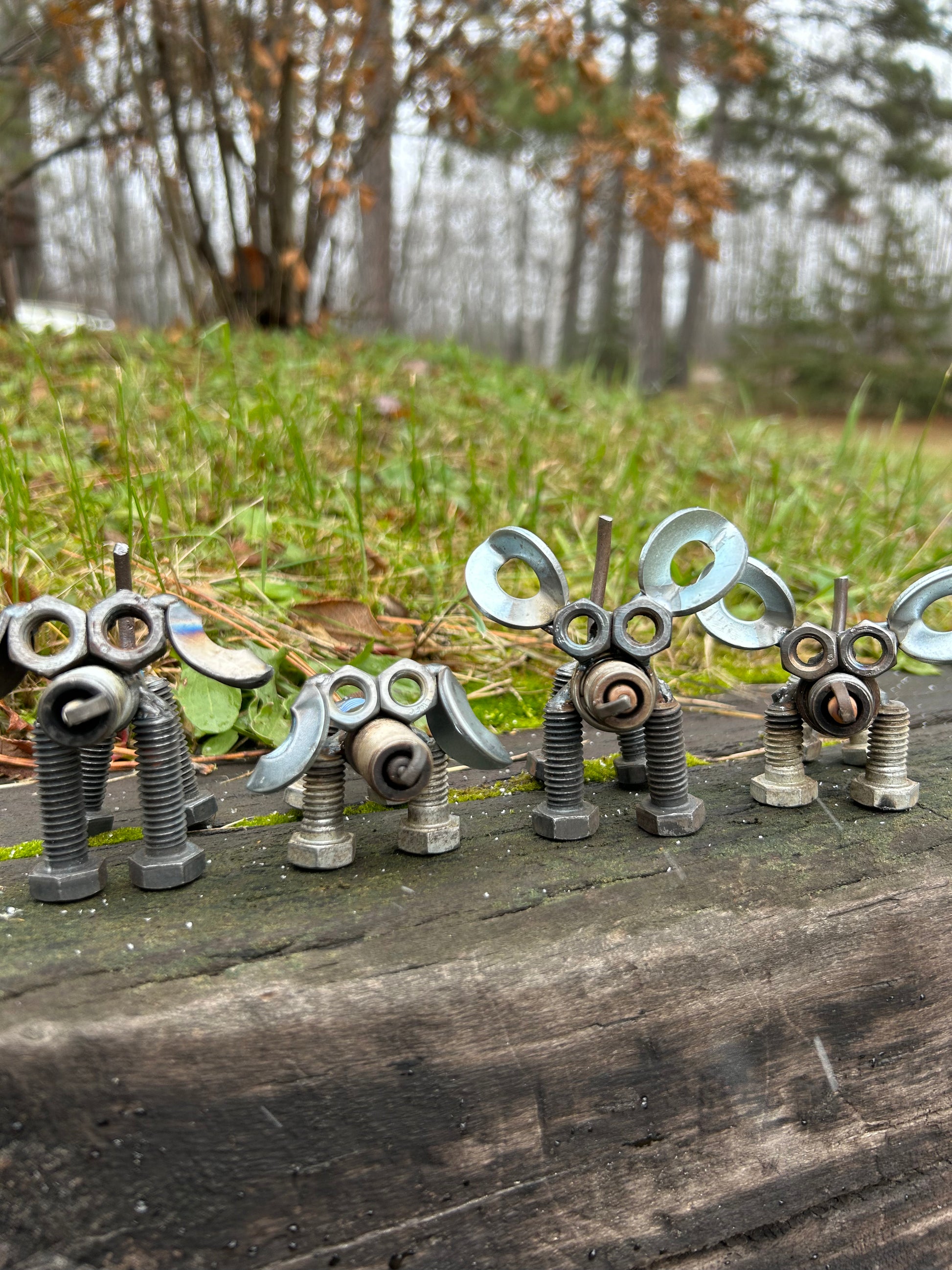These cute spark plug dogs would make a great addition to your home or office. Choose from many different customizable options such as tail length, height, and ear type.